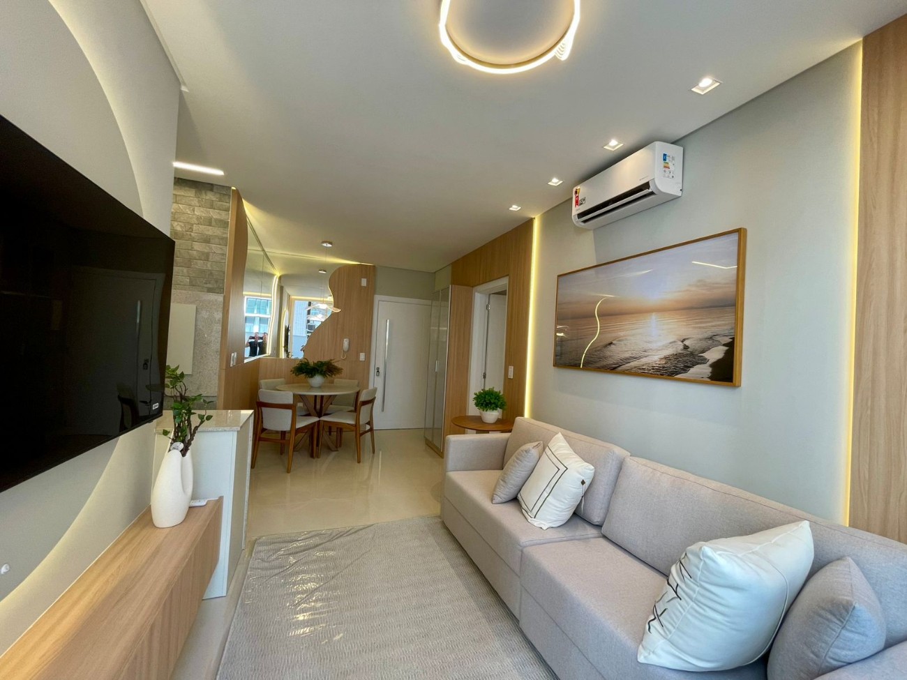 Prédio de alto padrão localizado em um dos bairros mais nobres e valorizados de Capão da Canoa, próximo ao mar, ao lado de uma avenida famosa da cidade e de uma linda praça, oferecendo conforto, sofisticação e excelente localização. O edifício conta com 02 elevadores, zeladoria permanente, gás central e hidrômetro individual inclusos na obra, além de uma infraestrutura completa de lazer, com piscina térmica, piscina externa e um rooftop diferenciado. No topo do prédio estão a sala gamer, academia equipada, salão de festas gourmet totalmente decorado, jacuzzi e um incrível terraço 360 graus com vista para o mar e a serra de Capão da Canoa. O apartamento é finamente mobiliado e decorado, composto por 02 dormitórios, sendo 01 suíte, cozinha integrada em estilo americano, lavanderia separada e churrasqueira que integra a cozinha à sala de estar, proporcionando um ambiente moderno e aconchegante. Possui piso em porcelanato polido, teto com rebaixo em gesso, banheiro social e ar-condicionado em todos os ambientes. O grande destaque fica por conta do maravilhoso terraço externo, um espaço exclusivo que pode ser utilizado da forma que você desejar, ideal para momentos de lazer e convivência. Um imóvel diferenciado, perfeito para quem busca qualidade de vida, conforto e valorização em uma das melhores localizações de Capão da Canoa.