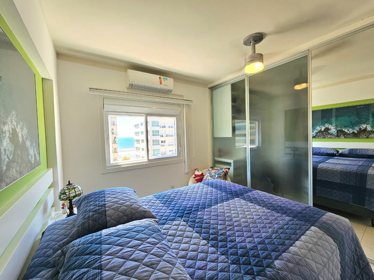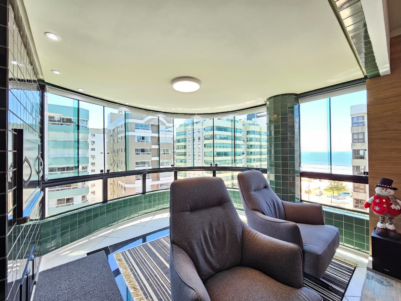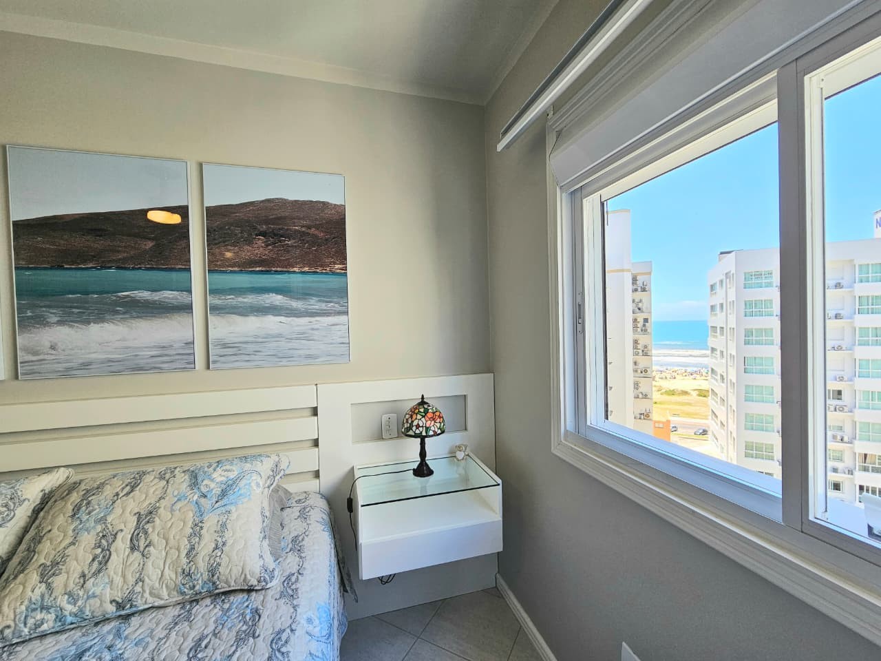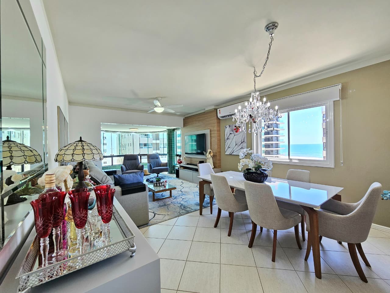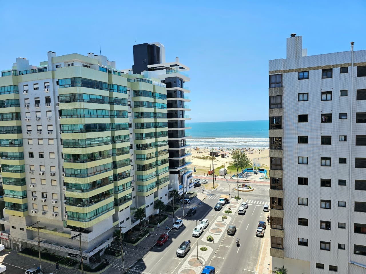 Apartamento com 122, 80m² de área privativa, de frente para Av. Ubirajara (Santinha), na melhor posição solar (leste/norte), com vista eterna e liberada para o mar, calçadão, composto de três amplos dormitórios, um sendo suíte com hidro, banhos social e lavabo, cozinha com bancada, área de serviço separada, um amplo living em 3 ambientes, estar, jantar e um sacada separada com churrasqueira e bancada com pia auxiliar, vista liberada para o mar de todos os cômodos do imóvel, imóvel todo mobiliado, equipado e climatizado, mais uma bom box de estacionamento. Edifício de alto padrão construtivo e de acabamento, fachada revestida com pastilhas de cerâmica, fachada imponente, próximo da beira mar e demais recursos da praia, dois elevadores, gás central, água quente, luz de presença nas áreas sociais, zeladoria, portão e porteiro eletrônicos.