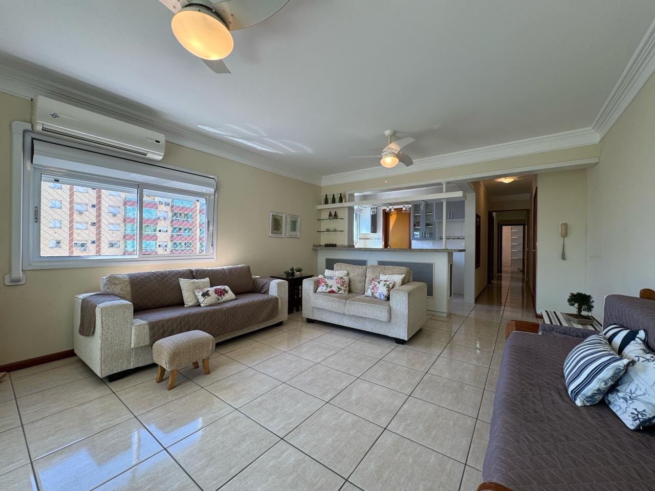Apartamento de dois dormitórios, localizado na Avenida Central, sacada de frente com churrasqueira, vista ampla e definitiva para o mar, proporcionando uma experiência única de morar com paisagem permanente e ambiente arejado. Com orientação solar frente norte, o imóvel recebe excelente iluminação natural durante todo o dia, garantindo conforto térmico e luminosidade aos ambientes. Living espaçoso com integração entre estar e jantar, ideal para quem valoriza amplitude e bem, tem ainda água quente, gás central e uma vaga de garagem, além de um prédio com elevador que oferece praticidade e acessibilidade. Um imóvel que une localização privilegiada, vista deslumbrante e estrutura funcional, perfeito para moradia ou veraneio com qualidade e conforto ao lado da Praça Enzo e poucos metros do mar.
