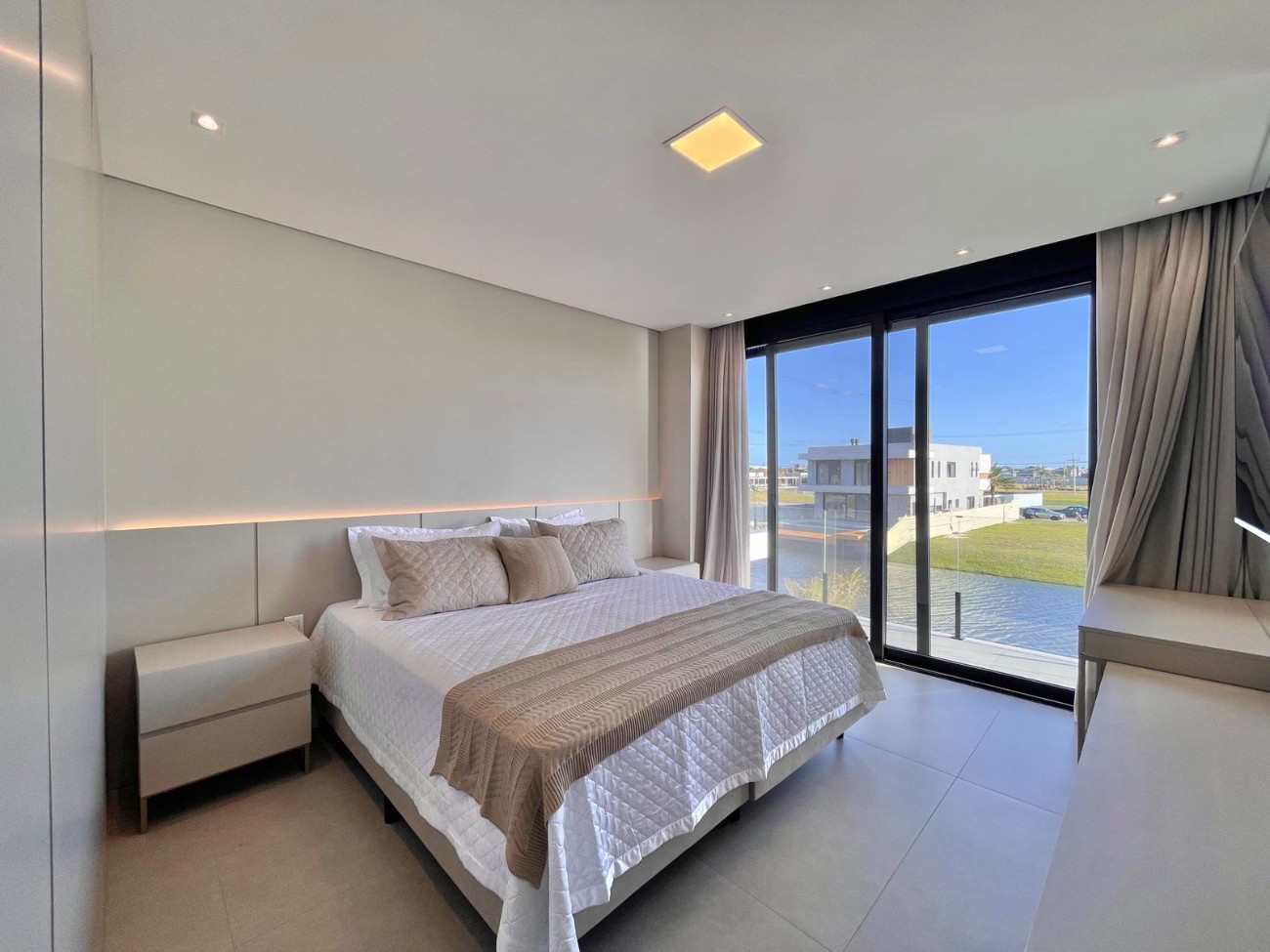 Casa Contemporânea Beira de Lago no Condomínio Amare – Mobiliada, Decorada e Pronta para Morar Uma residência sofisticada e completa, em um dos endereços mais valorizados do litoral. Com 327, 67m² de área construída em terreno de 393, 45m² beira de lago, esta casa combina arquitetura contemporânea, alto padrão de acabamentos e vista deslumbrante. Destaques do imóvel: • Amplo living com ambientes integrados e pé-direito duplo • Estar lareira, jantar e espaço gourmet totalmente decorados • Suíte térrea ideal para hóspedes • Garagem coberta para dois carros • 6 suítes com sacada e vista para o lago • Suíte master com closet e banheira de hidromassagem • Estar íntimo no mezanino • Piso aquecido nos banheiros • Esquadrias amplas com telas mosquiteiro e persianas motorizadas nos dormitórios • Totalmente mobiliada, climatizada e equipada • Piscina de concreto com borda infinita, iluminação em LED e espera para aquecimento • Paisagismo imponente com irrigação automatizada Condomínio Amare – infraestrutura completa, segurança 24h, lazer de alto padrão e uma vista única para a lagoa.