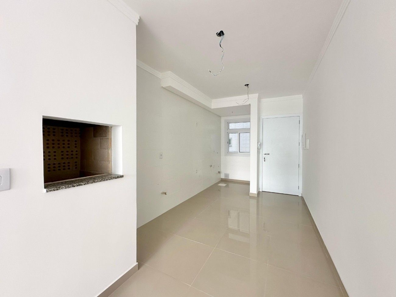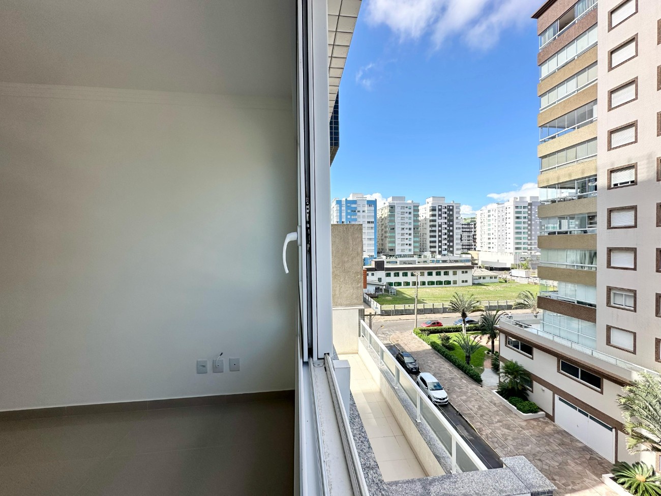 Apartamento novo, nunca habitado, sacada de frente para Avenida, living totalmente integrando, sala de jantar, estar e cozinha com churrasqueira, área de serviço, banheiro social, composto por dois dormitórios, sendo uma suíte e box de estacionamento. Edifício excelente padrão construtivo, composto de um rooftop com salão de festas com espaço de jogos, piscina com vista panorâmica para mar e serra, água quente, gás central, hidrômetro individual e ar split, portão e porteiro eletrônico, zeladora permanente, dois elevadores digitais e hall de entrada decorado.